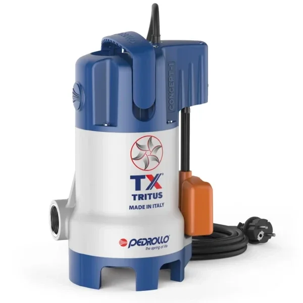 La bomba trituradora TRITUS-TX está equipada con un triturador en acero inoxidable templado de alta resistencia que permite la trituración completa de los sólidos y fibras contenidos en las aguas residuales y fecales del sector doméstico. Las electrobombas TRITUS-TX están equipadas con un flotador compacto integrado de funcionamiento magnético y deslizante verticalmente que garantiza una seguridad eléctrica total y permite utilizar la bomba en espacios muy reducidos (incluso en pozos de sólo 220 mm de lado).